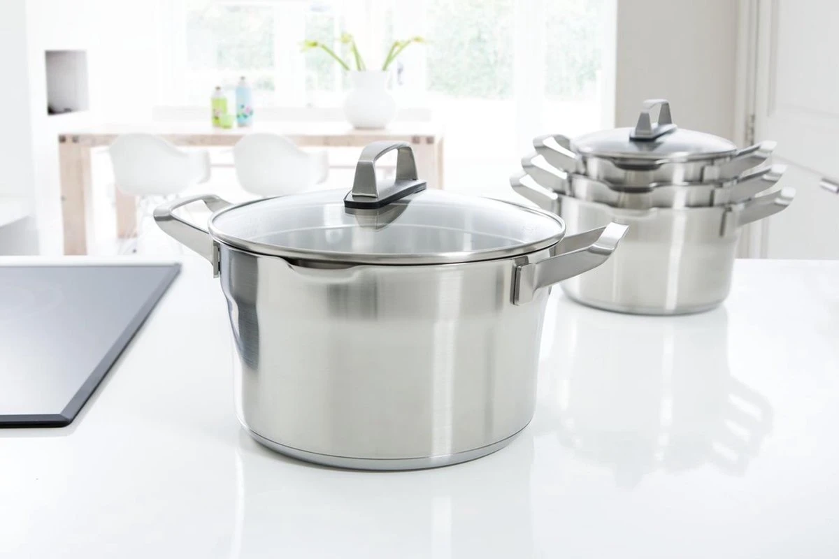 De BK Premium+ Pannenset is geschikt voor het koken van diverse groenten en sauzen. Het afgieten is makkelijk en veilig door de afgietgaten in de deksel en de speciale schenktuiten. Na gebruik mogen de pannen de vaatwasmachine in. De pannen zijn goed stapelbaar in de kast.De BK Premium+ serie combineert robuuste pannen met een trendy design. De verschillende pannen zijn voorzien van opvallende grepen met een unieke glooiing. Veilig en comfortabel koken doe je met de pannen uit de Premium+ serie dankzij de topkwaliteit die geschikt is voor dagelijks intensief gebruik.